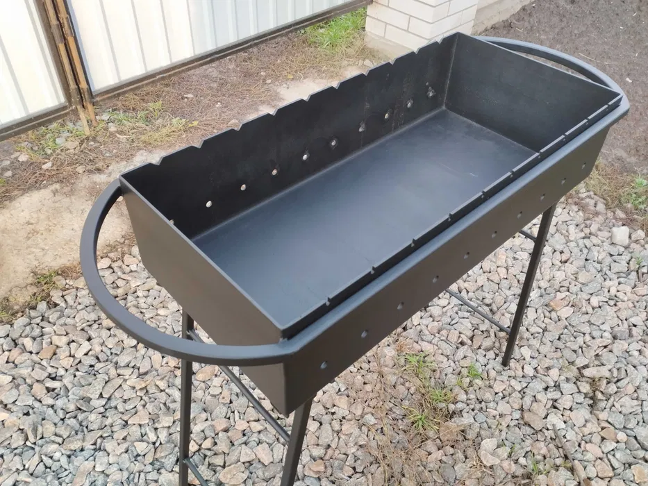 Шукаєте мангал, який не прогорить через сезон і не втратить форму? Пропоную посилену модель ручної роботи, виготовлену з товстої сталі та захищену спеціальною термофарбою. Це ідеальний баланс між міцністю, зручністю та приємною ціною.